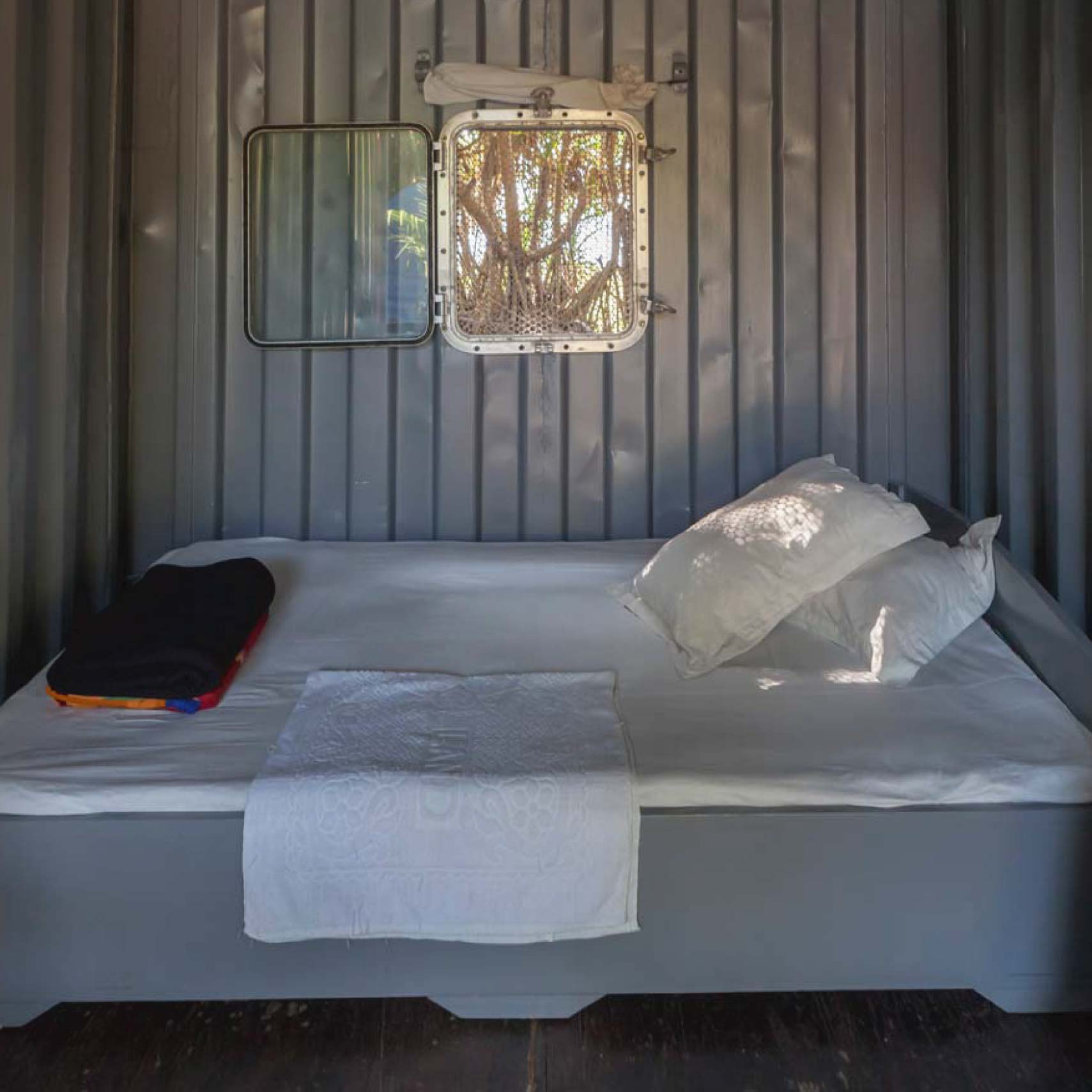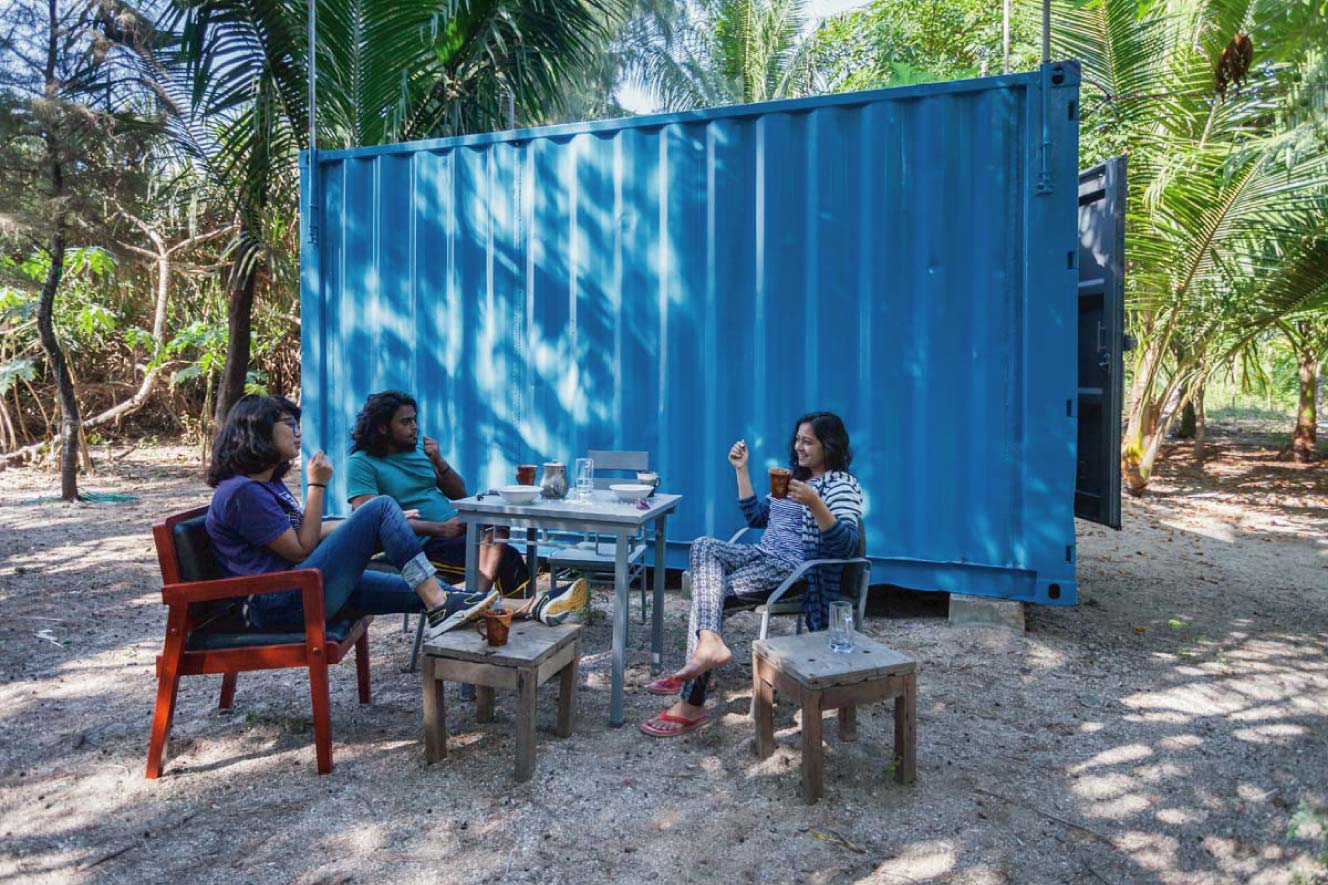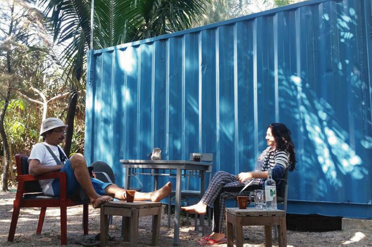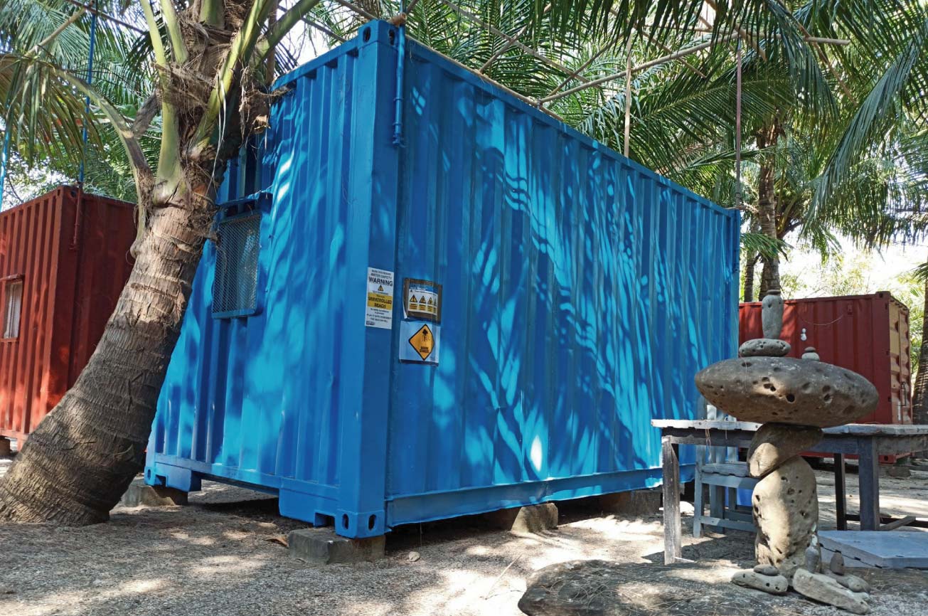 Our container house help you to feel a part of the surrounding environment. Each room includes a table, hammock, and two beautiful unique chairs.