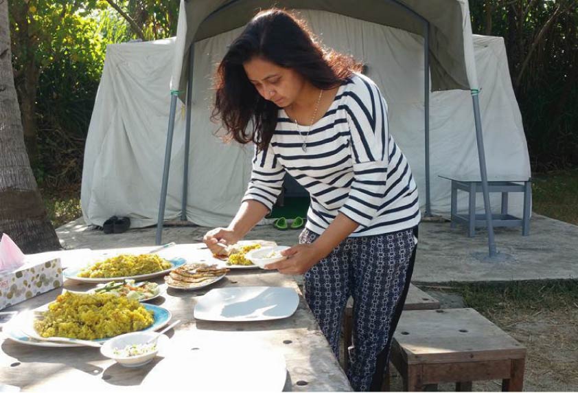 Our regular tent help you to feel a part of the surrounding environment. Each tent includes a varanda, low height table, and two beautiful unique chairs.