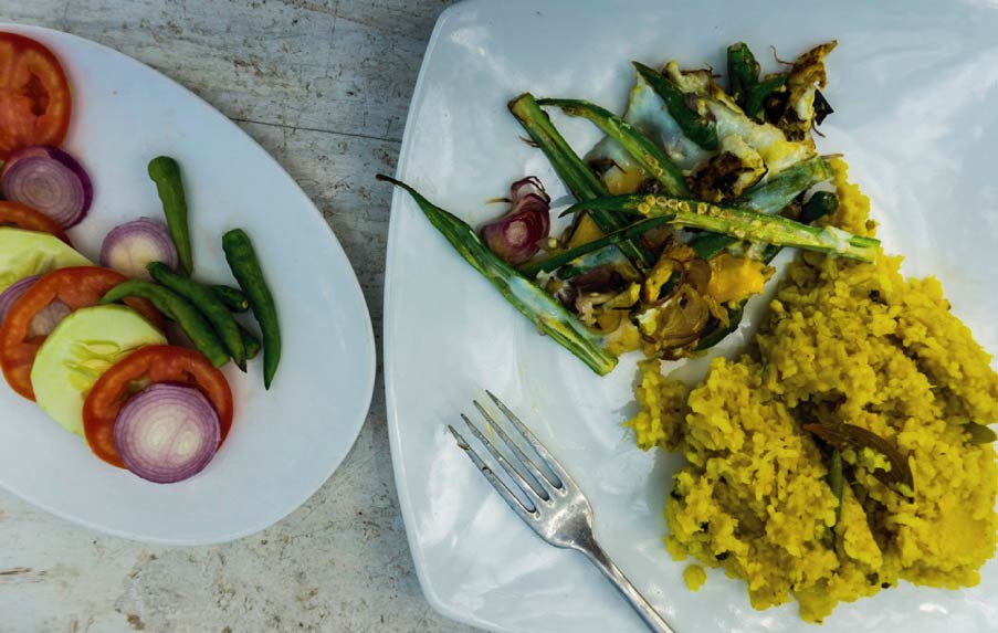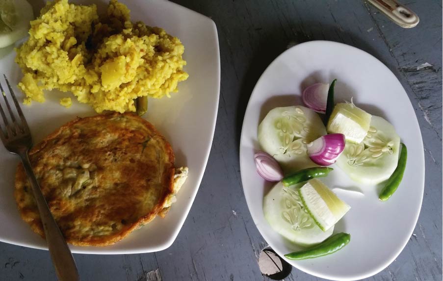 BREAKFAST: MIXED KHICHURI+EGG OMLET+SALAD+MINERAL WATER